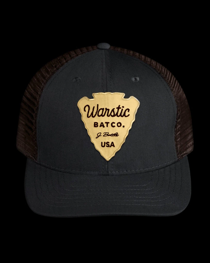The Warstic Off-Season Snapback Black/Tobacco (Arrowhead) features a gold arrowhead patch. Six panel design; mesh back with polyester front. Snapback. One size fits most.
