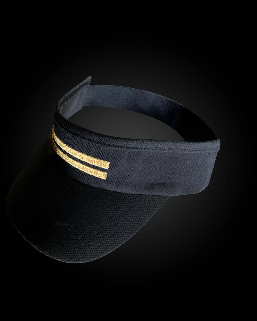 The Warstripe Visor features gold embroidered Warstripes. Warstic is emproidered on white on the left side. The back is a black stretch band, with “BATTLE” printed in black. One size fits most.