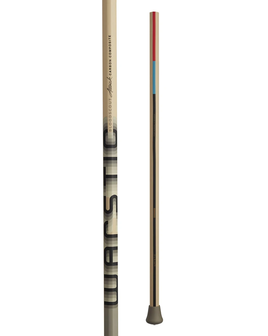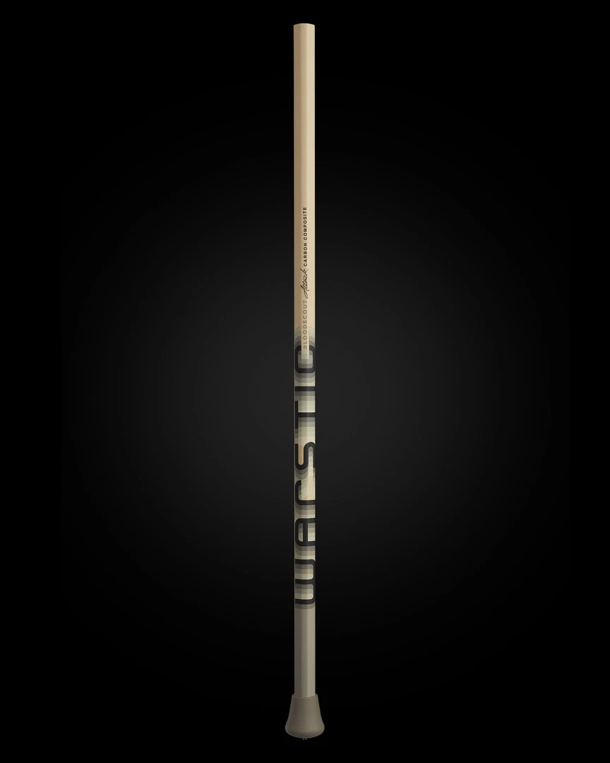 The Warstic Bloodscout Attack Lacrosse Shaft is a high performance composite shaft, designed for offensive speed and agility. Feather light, the Bloodscout is made from premium carbon fiber, giving you both flex and durability. Taking cues from our baseball bat designs, the shaft features our iconic Wartip look (the glossy end section, with a matte finish on the rest of the shaft) and our Pommel Precision end cap in matte gray. Its striking bone white color is offset by “Warstic” in black and grays on the front, and strip of color blocked black, ocean and red on the back.