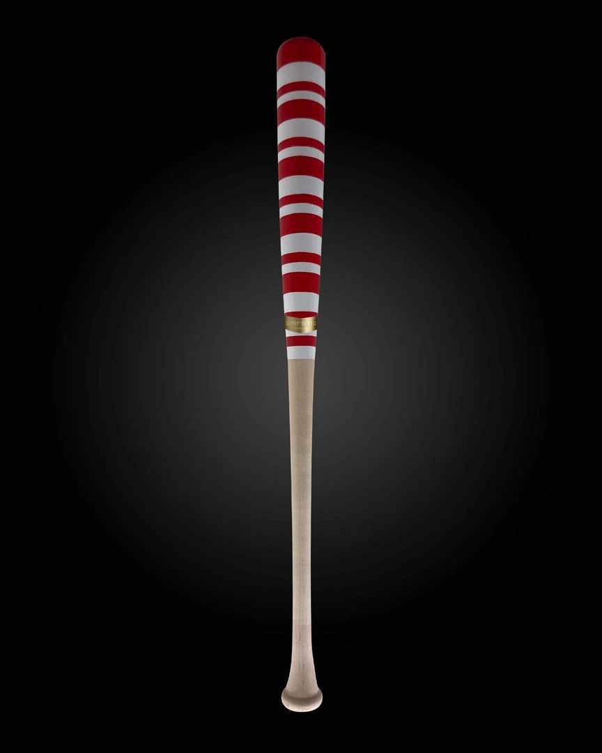 This bat is one of a kind, made start to finish in the Lathe and Stain Room at the Warstic Flagship Store and Headquarters in Dallas. With its red barrel and white stripes, this bat is perfect for holiday gifting. Fully customizable, if you purchase this bat, we’ll add your personalized engraving to the barrel to make it even more special!
