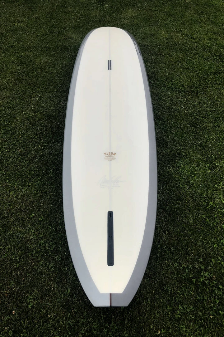 The Warstic Sharkskin Surfboard x Album Surf is made-to-order and handcrafted in San Clemente, California. Designed by Warstic Founder and Design Director @onefastbuffalo as his personal stic this board combines old school every day glider style with striking modern 2 tone look. Made with traditional riding in mind, trimming and camping out on the nose. Flat entry and mid-section rocker, accelerates and flips a bit off the tail. Moderate nose concave, 60/40 rails. Effortless glide and trim.
