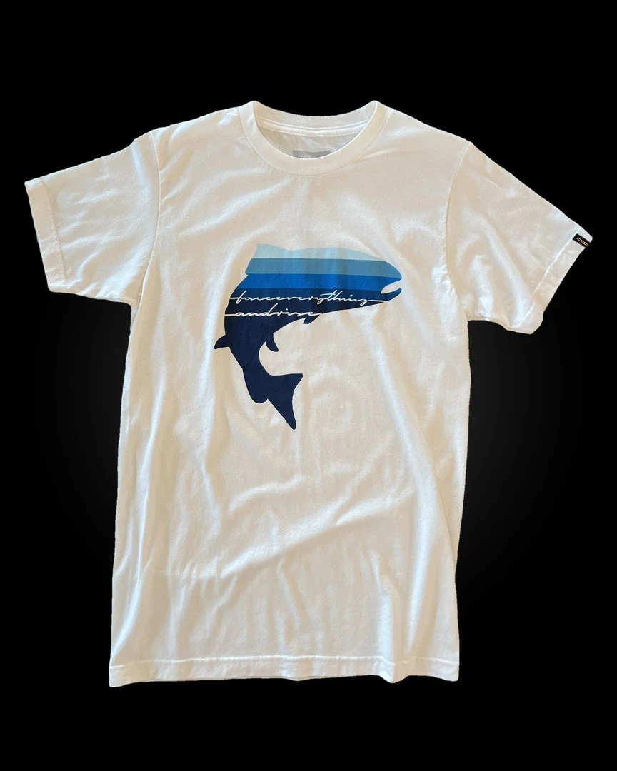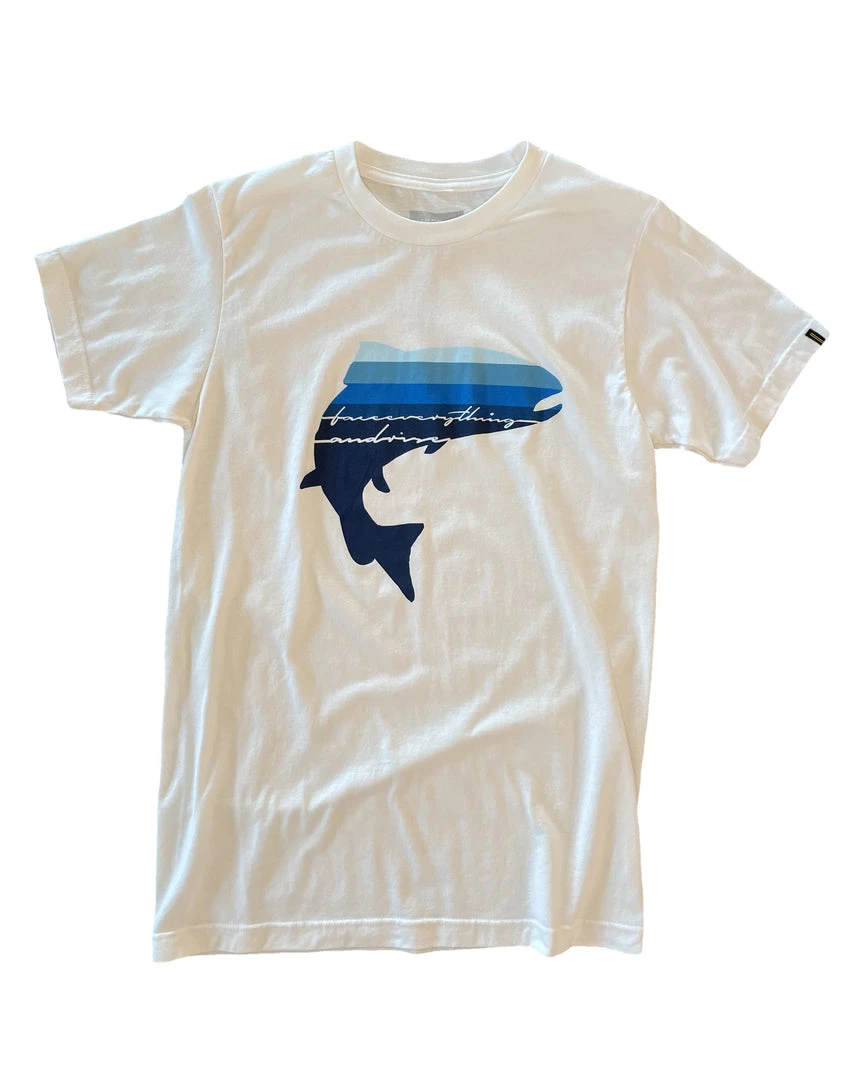 Like human emotion, water is an always moving and ever-changing quality. One of the trout’s most impressive abilities is its skill to swim upstream. Displaying the aquatic blues of our War Trout Face Everything & Rise Tee across your chest signifies one of the purest battle experiences in nature. Will you give up with the first sign of adversity? Or will you, with a strong mind and prepared body, reach the next level of your potential?