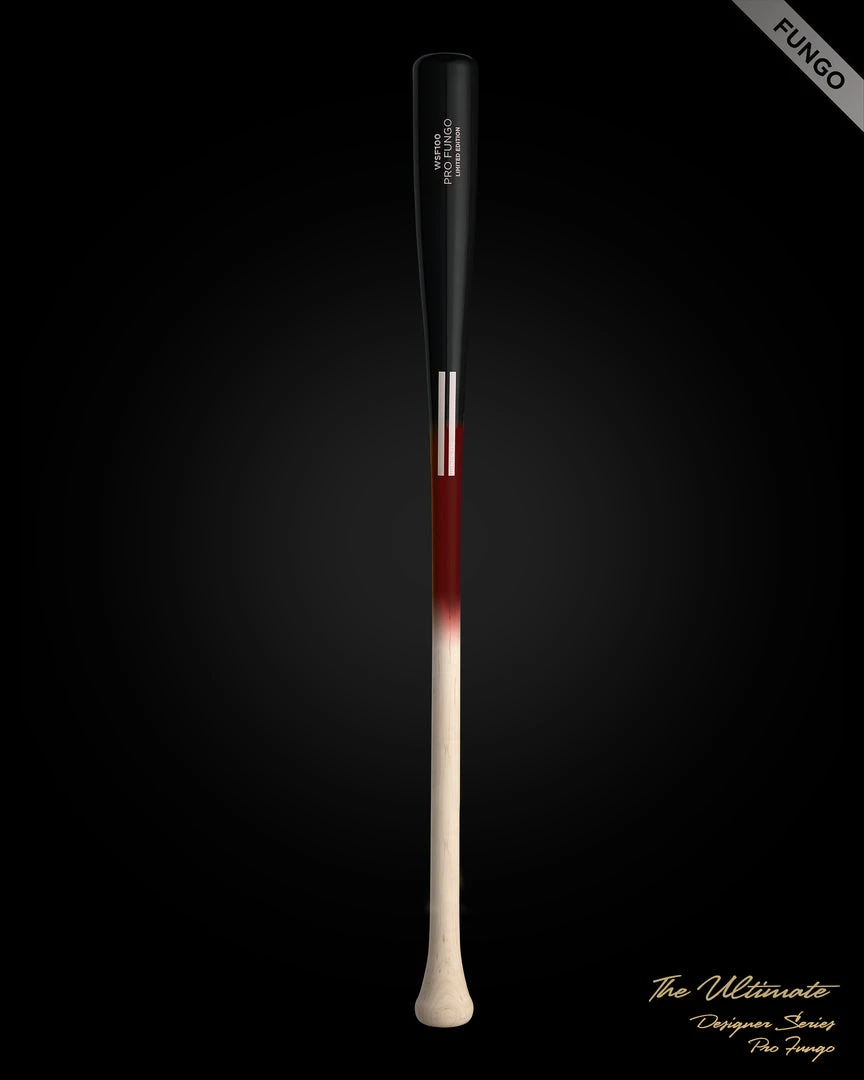 The Ultimate Team Fungo features a black, half-dip barrel, customizable mid-fade and natural handle with white Warstripe logo and engraving.